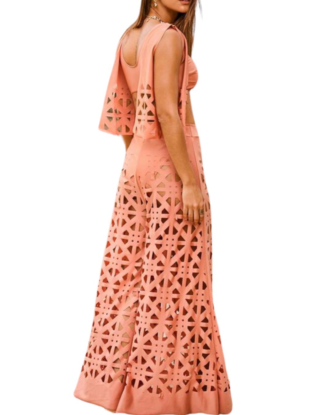 3pcs Set V-Neck Hollow High-End Elegant Pants Burnout Craftsmanship Sleeveless Women Bikini Summer