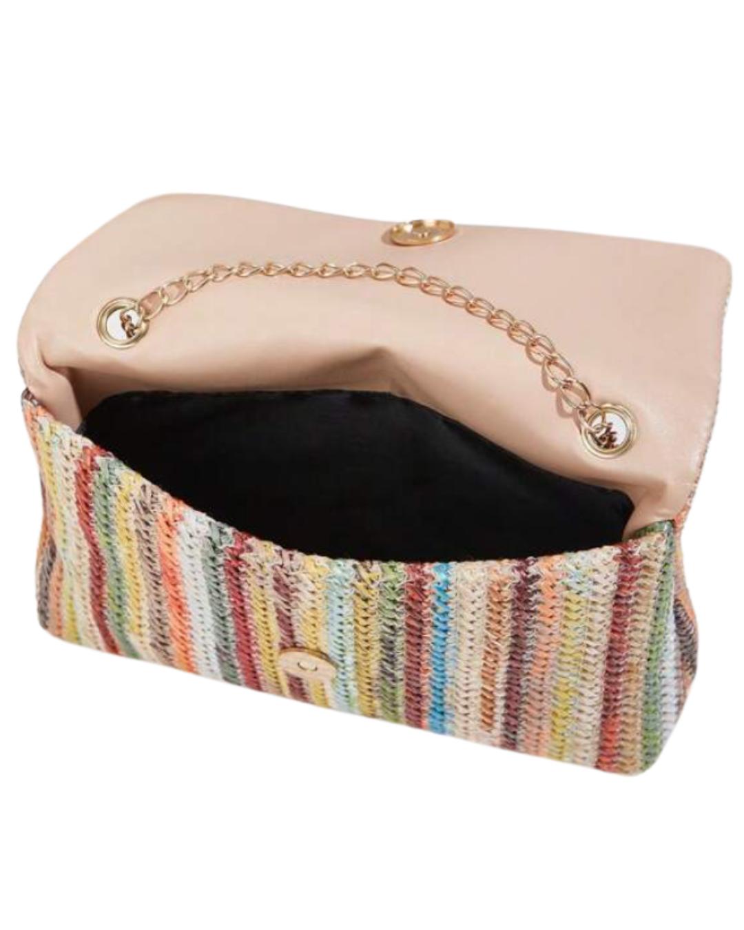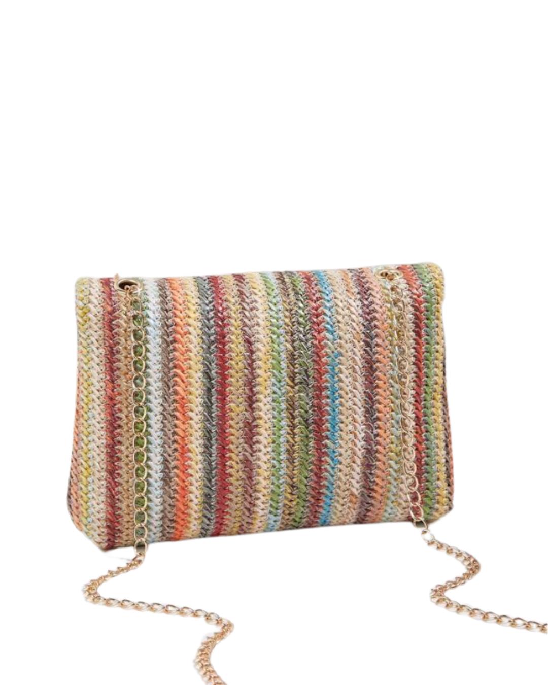 Colorful Contrast Woven Magnetic Closure Bohemian Bag.