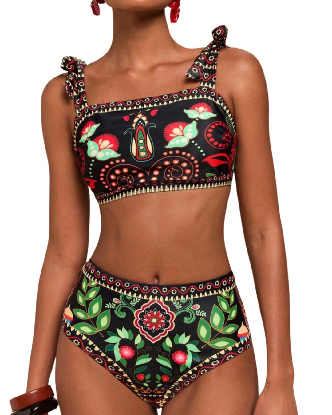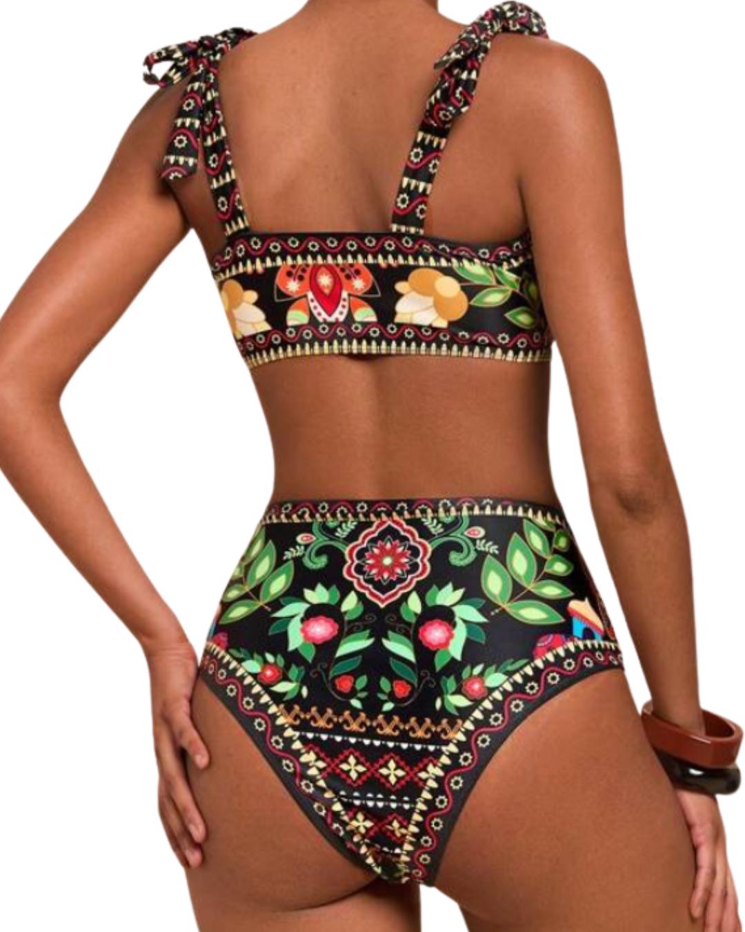 Floral Print Tie Shoulder Bikini Swimming Costume Set.