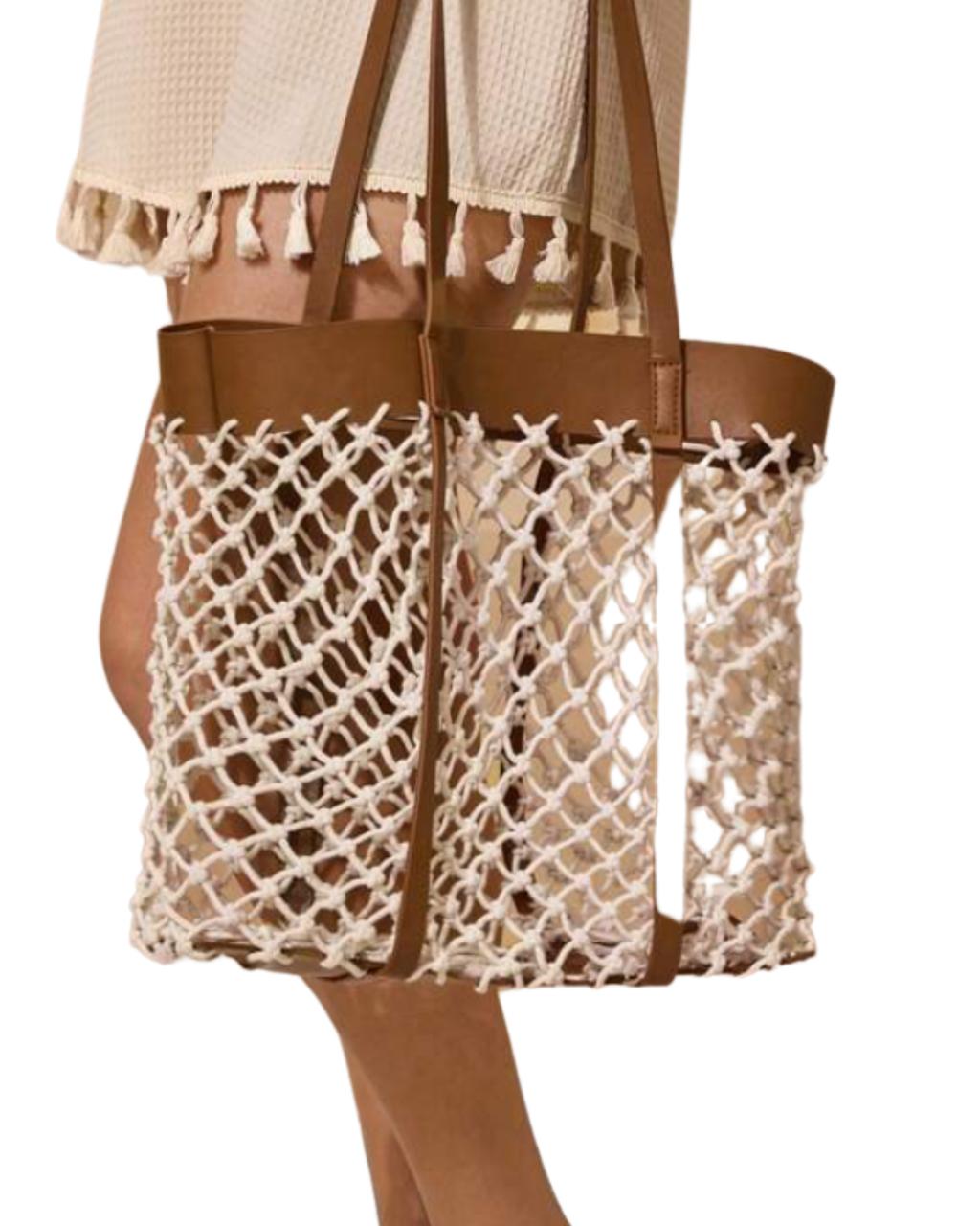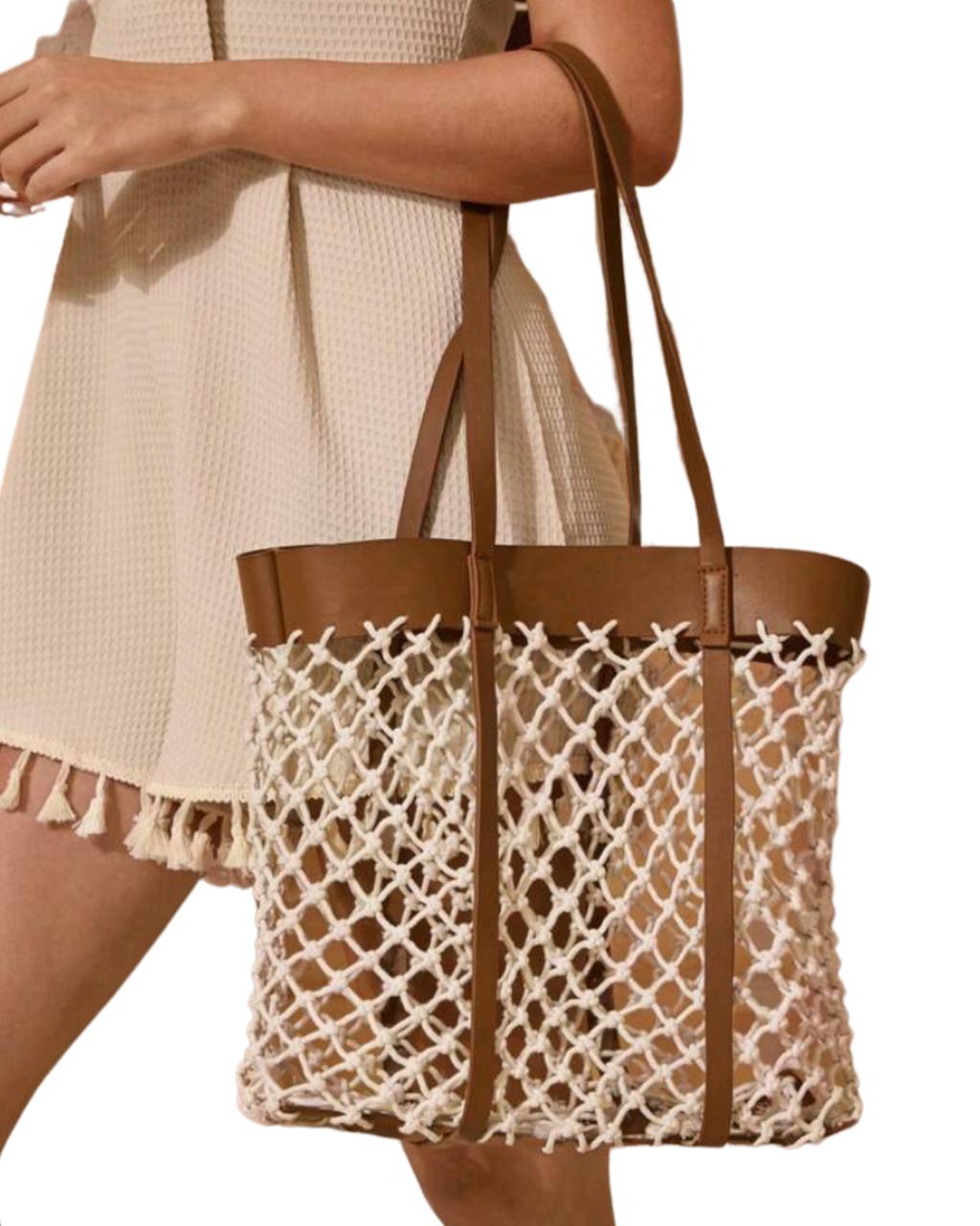 Hollow Out Solid Color Patchwork PU Rope Drawstring Bag.