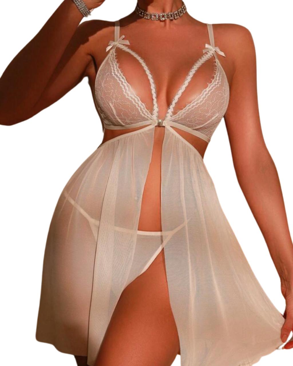Lace Patchwork 2pcs Lingerie Dress Set.